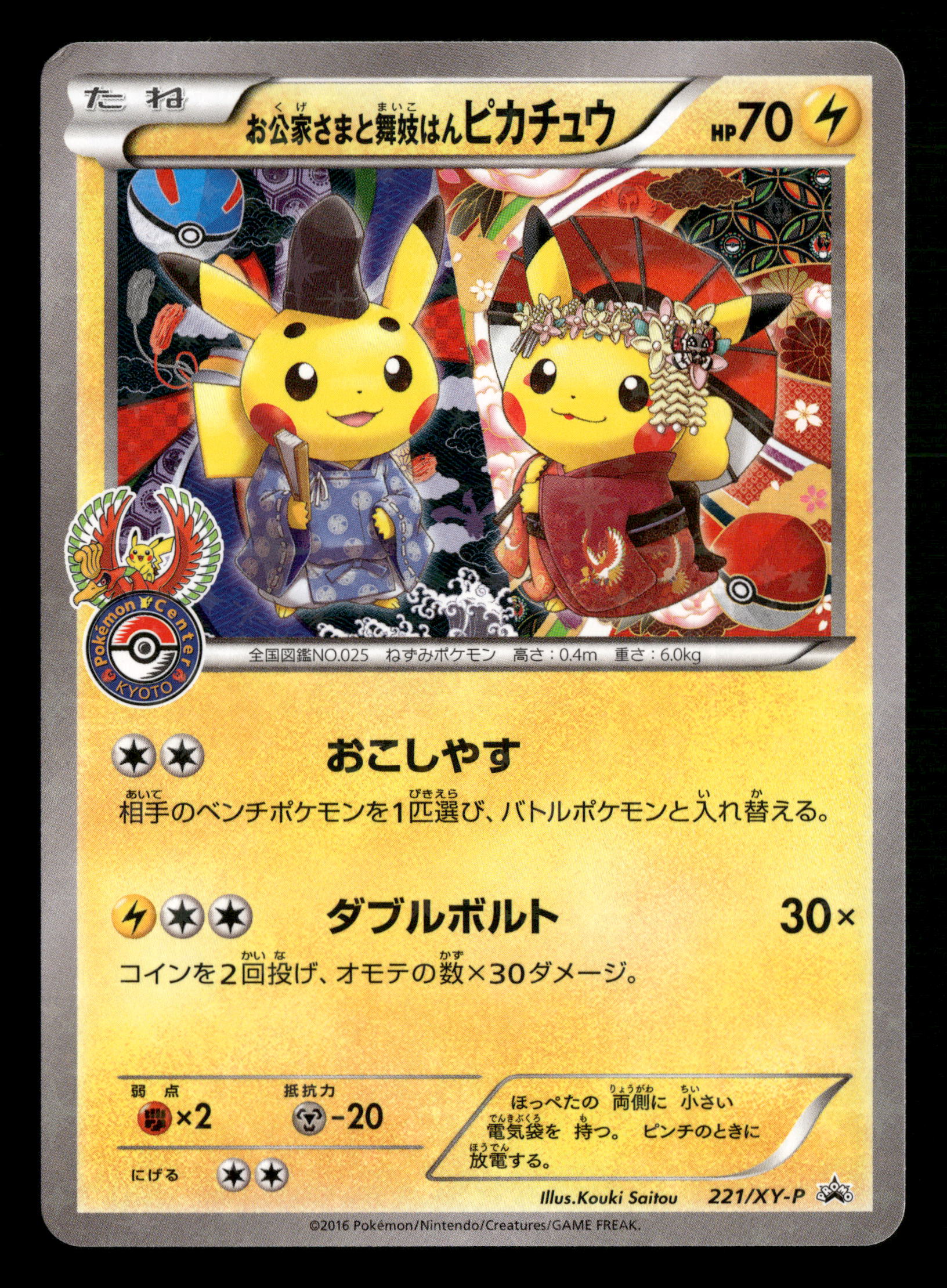 2016 Pokemon Kyoto Pokemon Center 221/XY-P Okuge-sama and Maiko-han Pikachu Promo