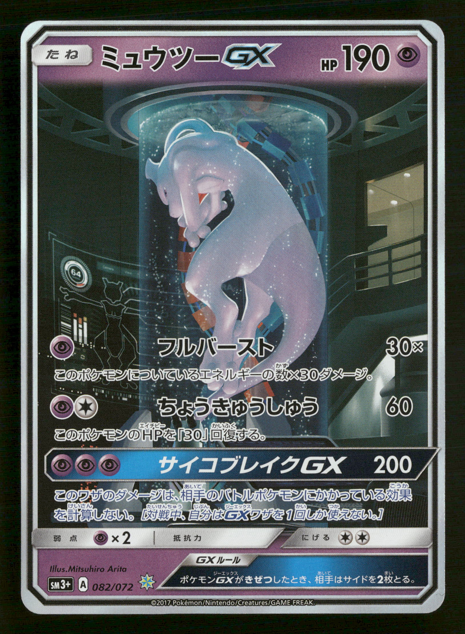 2017 Pokemon sm3+ Shining Legends 082/072 Mewtwo GX