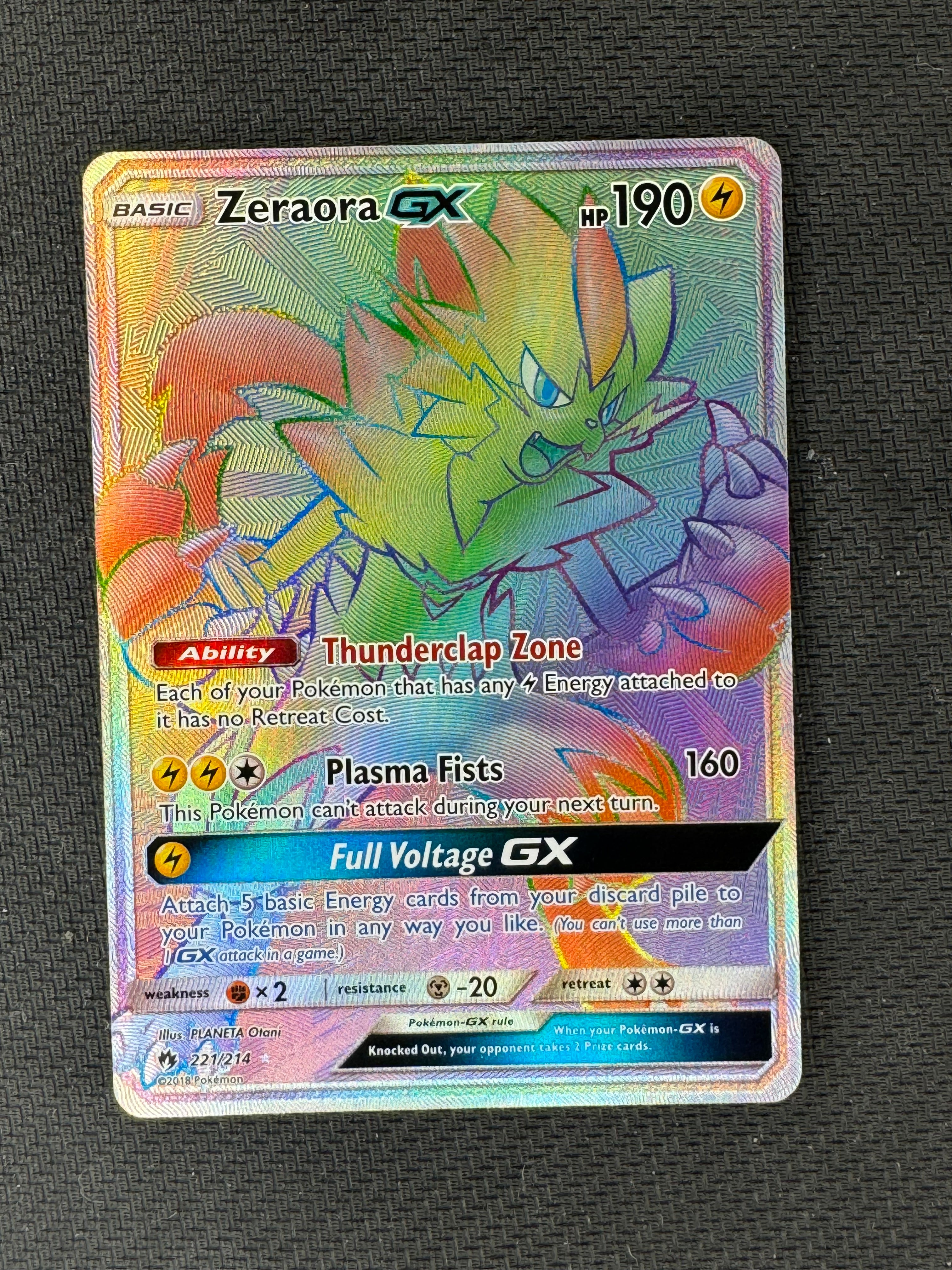 2018 Pokemon Lost Thunder 221/214 Zeraora Gx Full Art Rainbow Secret Rare