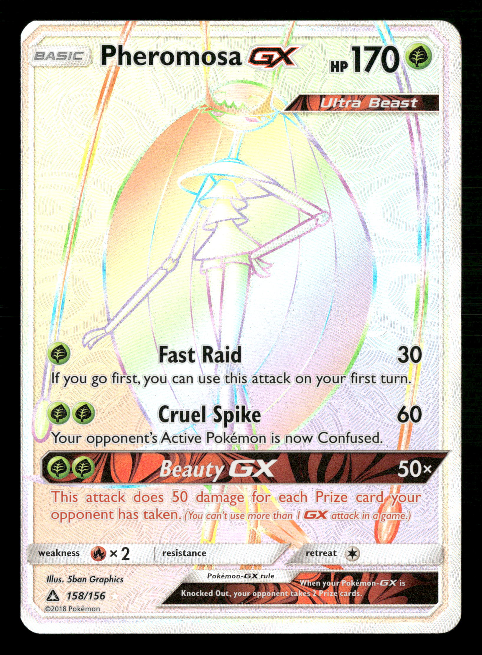 2018 Pokemon Ultra Prism 158/156 Pheromosa Gx Rainbow Secret Rare