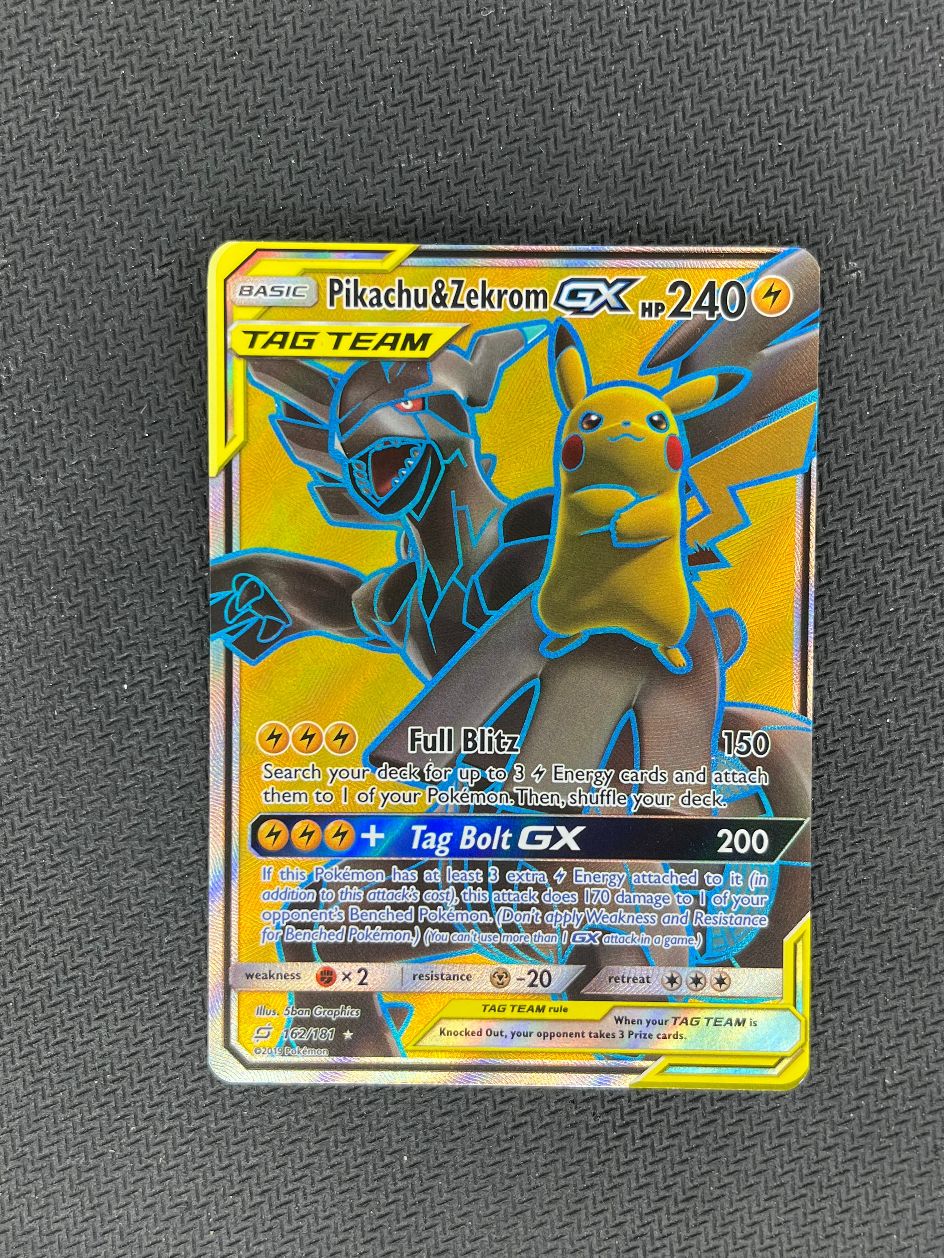2019 Pokemon SM Team Up 162/181 Pikachu&Zekrom GX Full Art