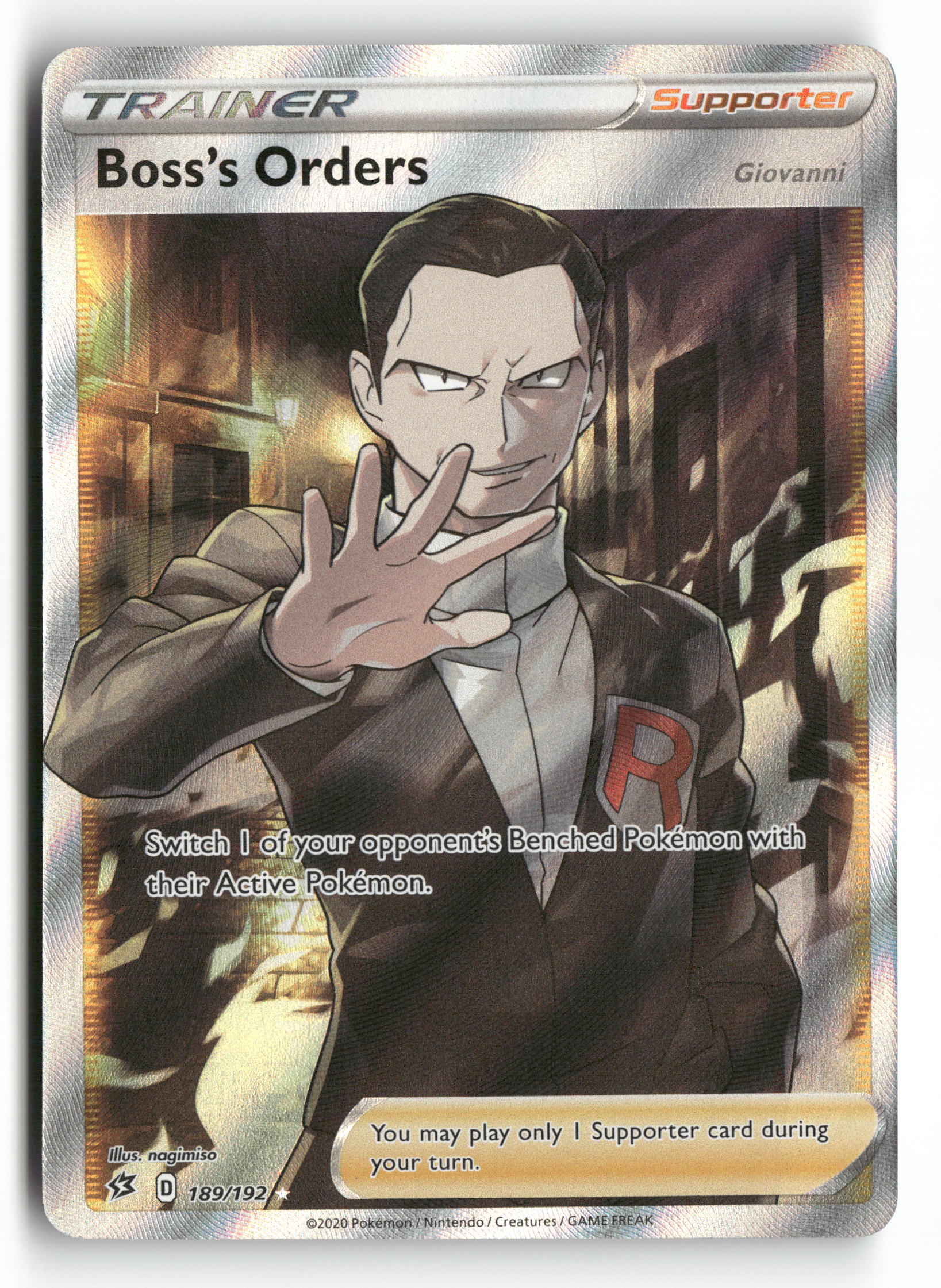 2020 Pokemon Rebel Clash 189/192 Boss’s Orders Full Art Trainer