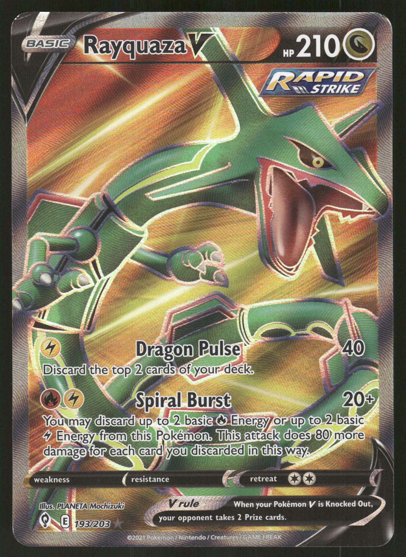 2021 Pokemon Evolving Skies 193/203 Rayquaza V Full Art
