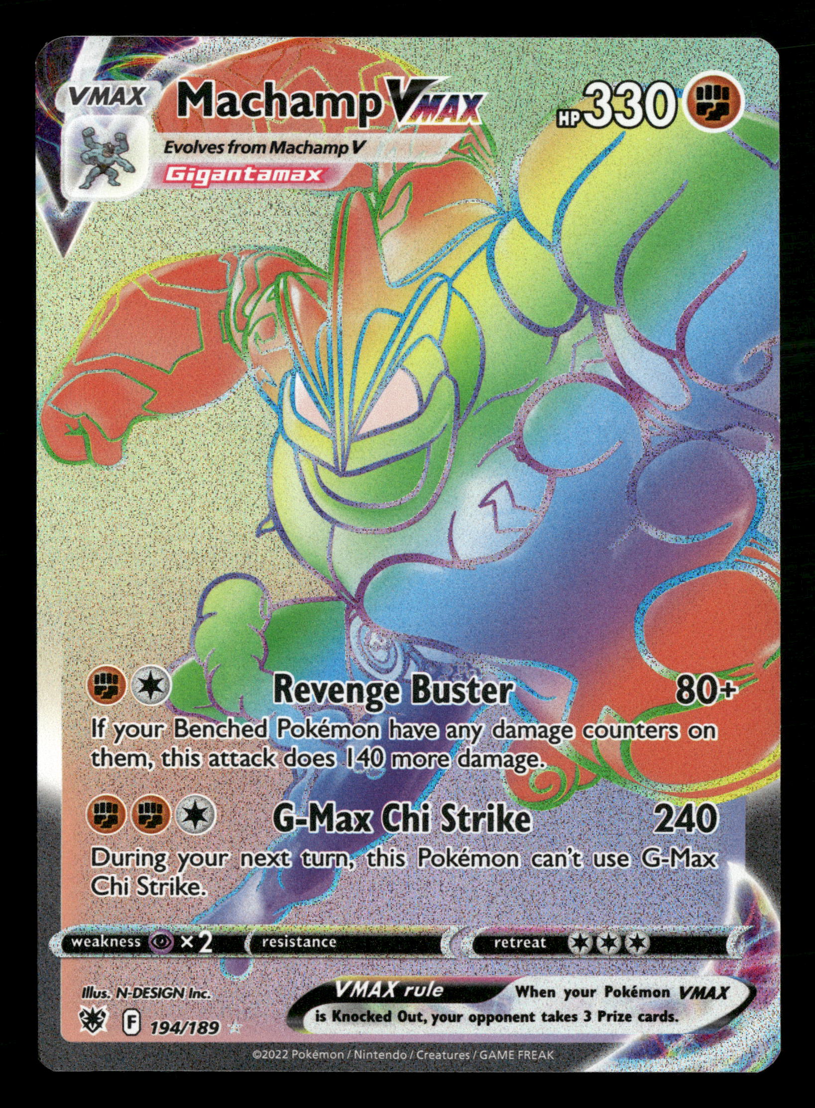 2022 Pokemon Astral Radiance 194/189 Machamp Vmax Rainbow Secret Rare