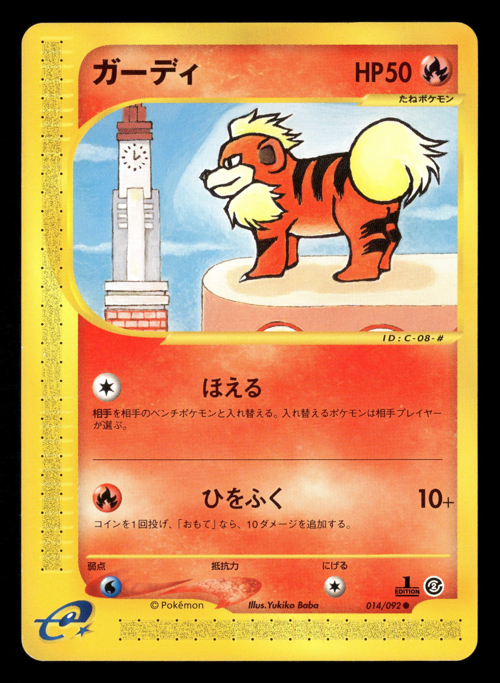 2002 Pokemon Japanese E-Series 2 Town on No Map 014/092 Growlithe 1st Edition Common