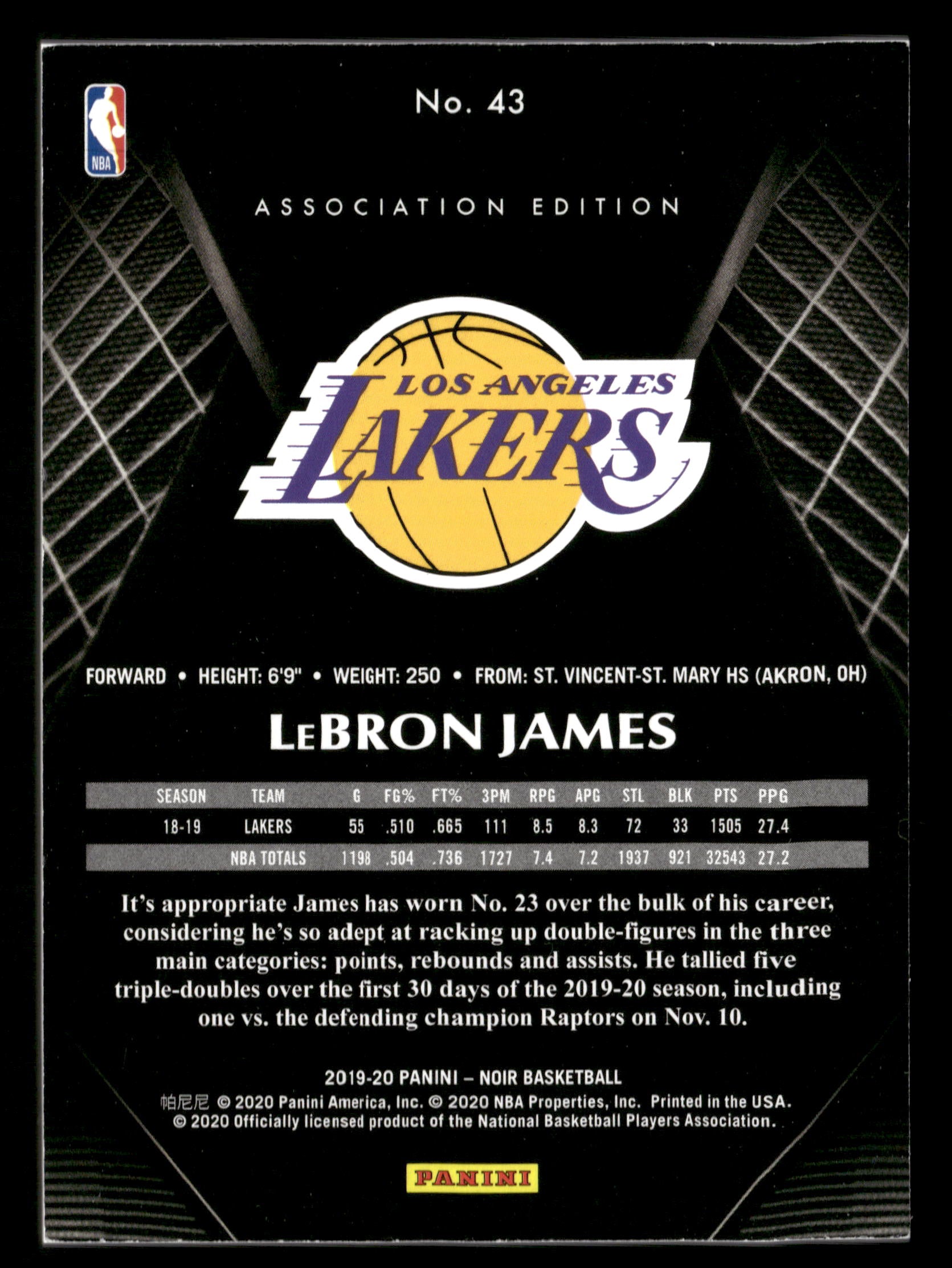 2019/20 Panini Noir No.43 Lebron James 25/25