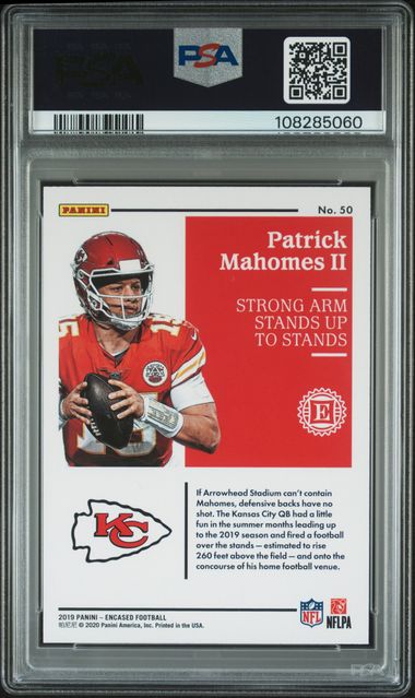 2019 Panini Encased - Patrick Mahomes II #50 Gold /10 PSA 8