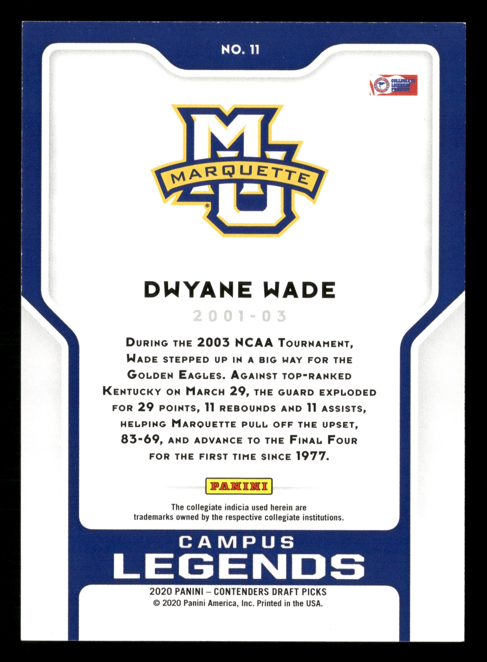 2020 Panini Contenders Draft Picks No.11 Dwyane Wade Campus Legends 09/10