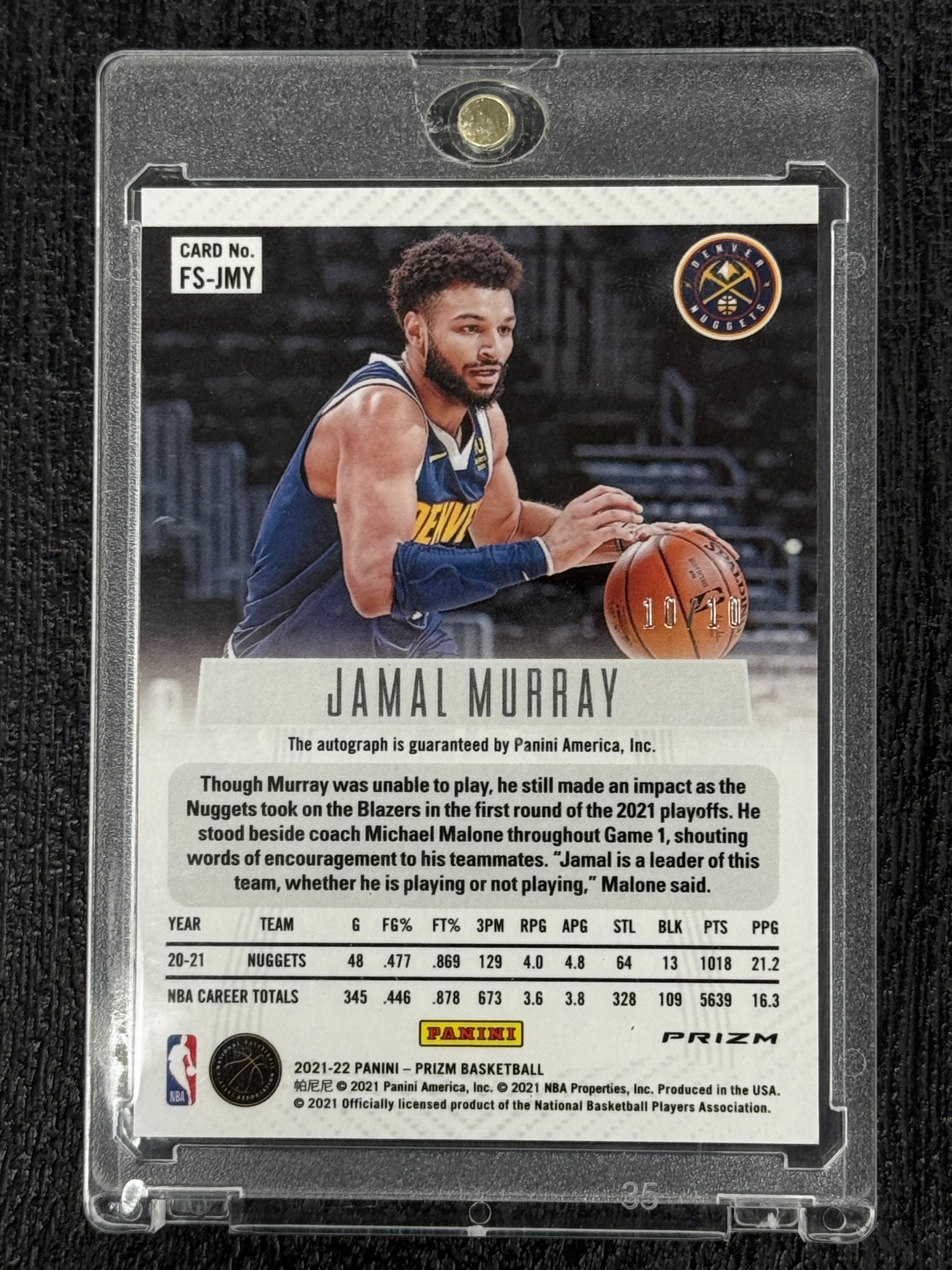 2021/22 Panini Prizm #FS-JMY Jamal Murray Gold Prizm Auto 10/10