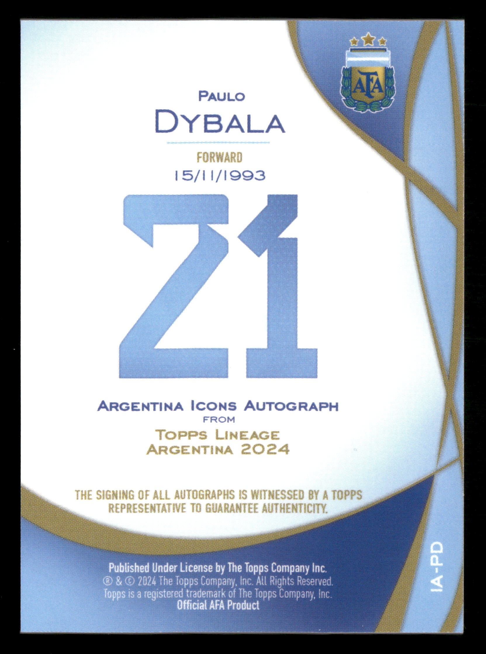 2024 Topps Lineage #IA-PD Argentina Icons Sky Blue Tango Auto /50